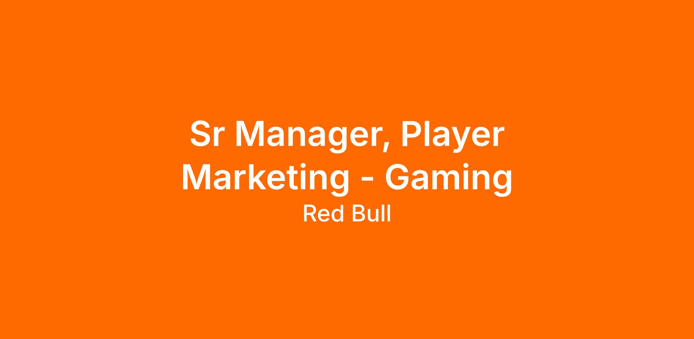 The Senior Manager, Player Marketing will be responsible for developing, owning, and overseeing the Red Bull North America Player Marketing program for gaming.