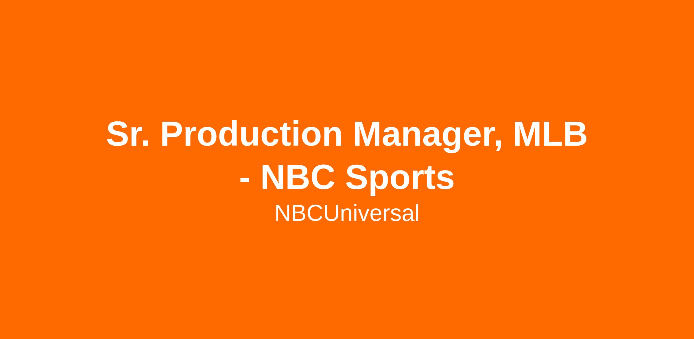 This role will focus on MLB on NBC, but will be involved in other NBC Sports Properties as needed
