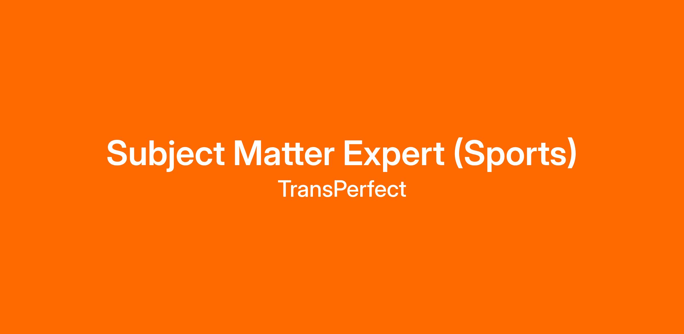 Subject Matter Expert (Sports)