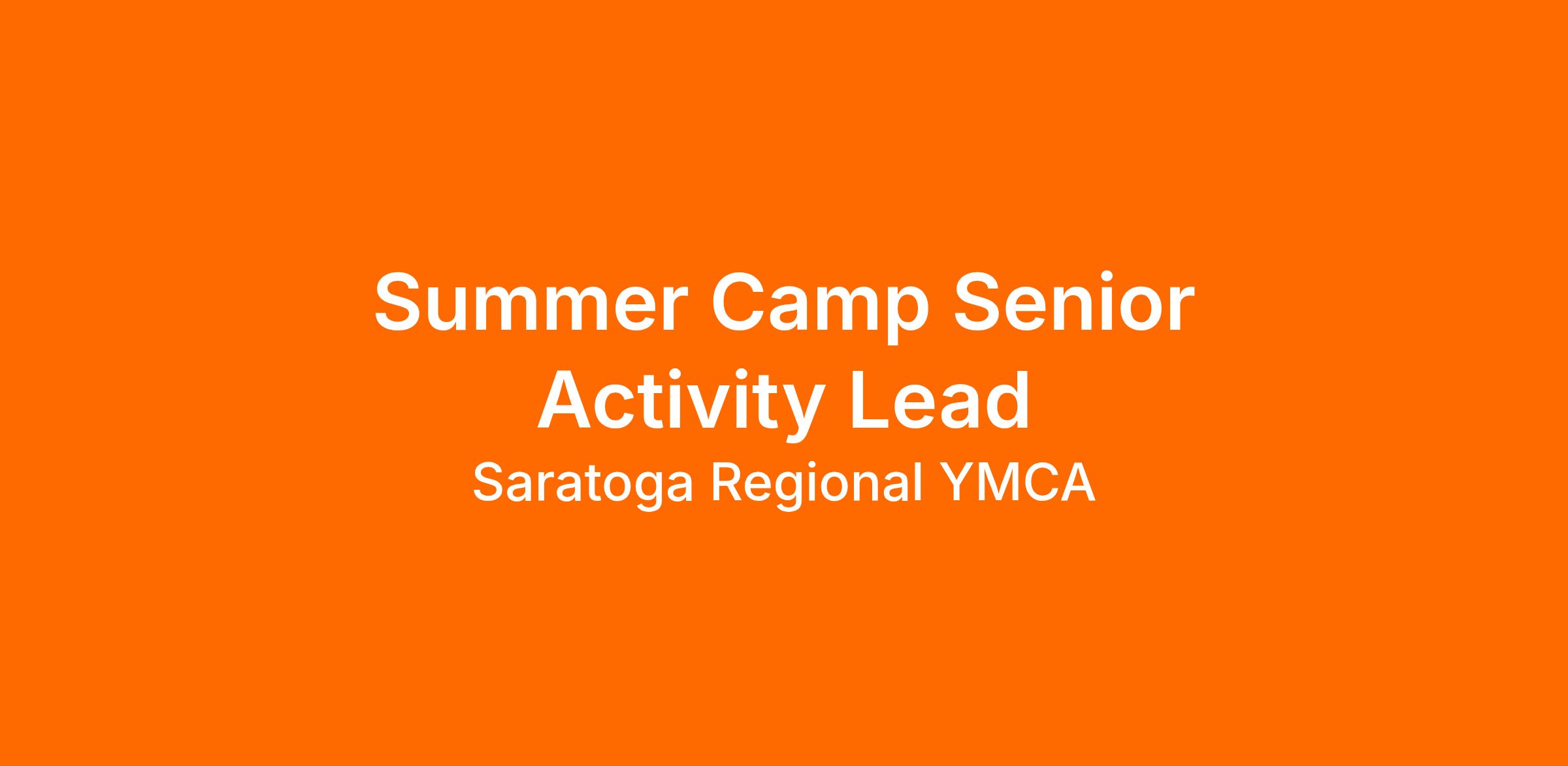 The Saratoga Regional YMCA is hiring for Summer Camp Senior Activity Leads and we are excited to have you join our team! Under the direction of the Camp Director, the Senior Activity Lead oversees a unit of children with support from group counselors for a set time in a specific activity, explores the community they live in, participate in sports and swimming and develop positive relationships. Activity Leads model the Y's leadership core values of caring, honesty, respect and responsibility.