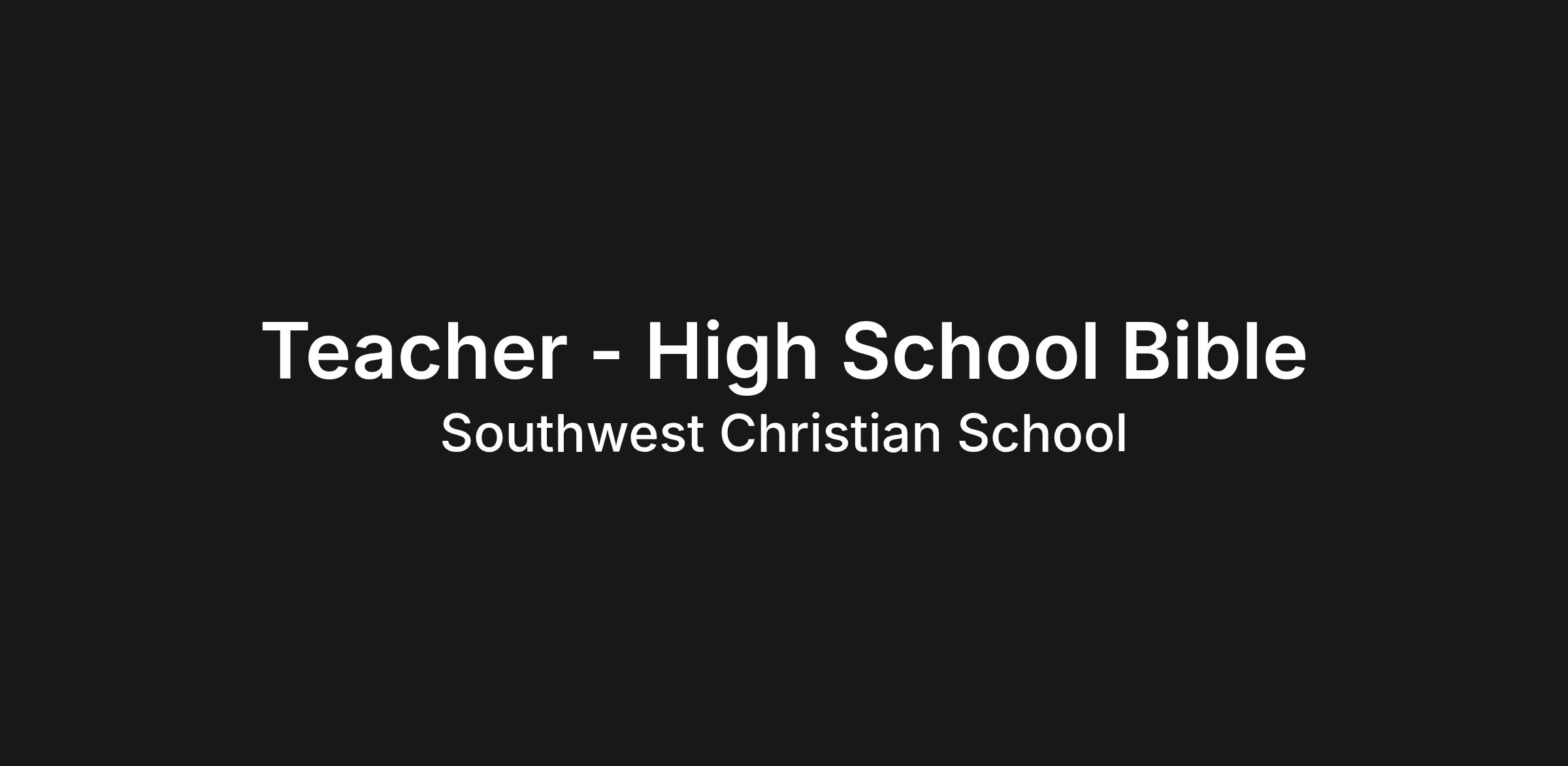 Southwest Christian School is seeking a full-time High School Bible Teacher for the 2026-2027 school year.