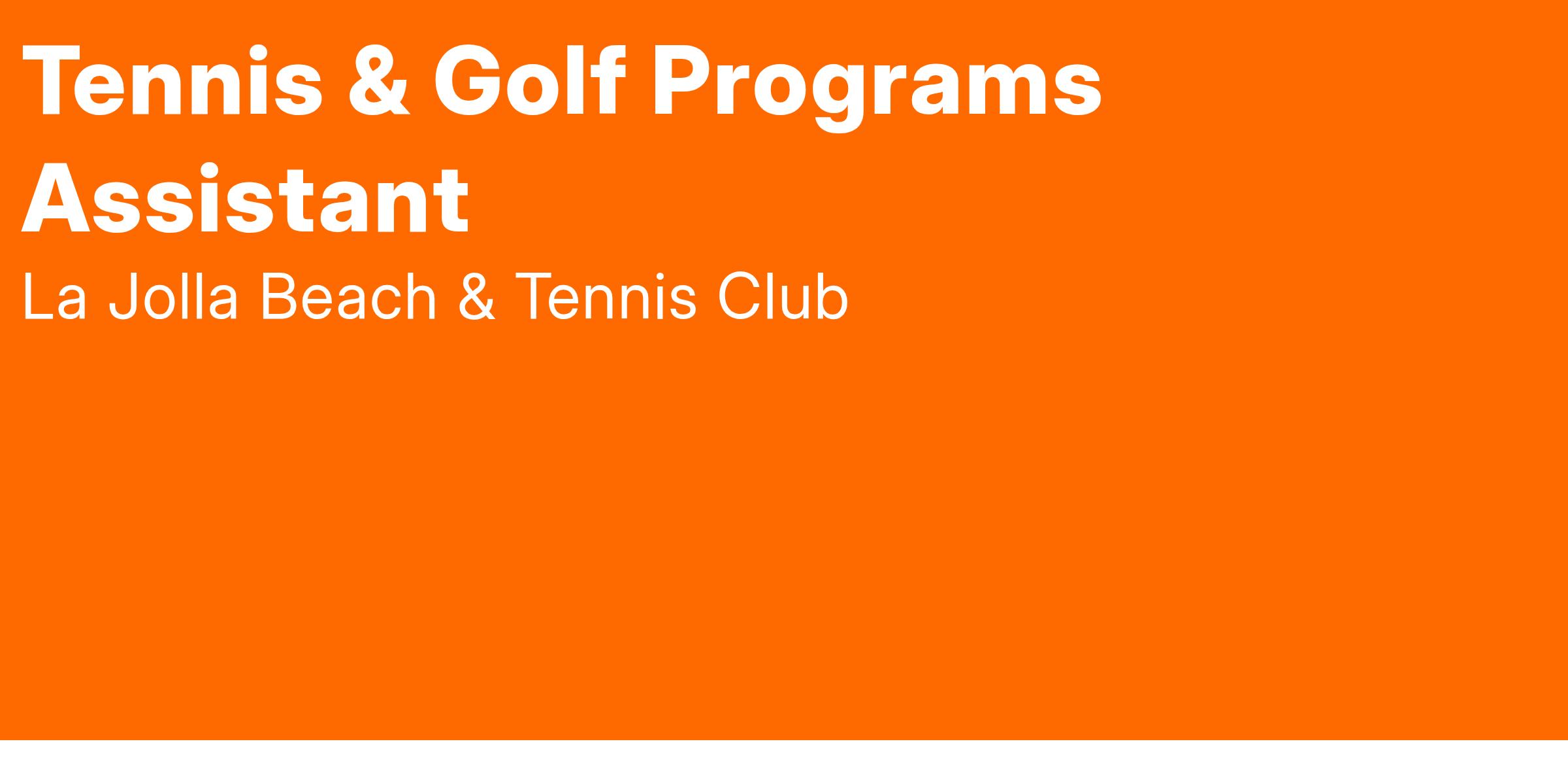 The La Jolla Beach & Tennis Club is currently seeking a highly skilled Tennis & Golf Programs Assistant to join our team at our beautiful oceanfront property!