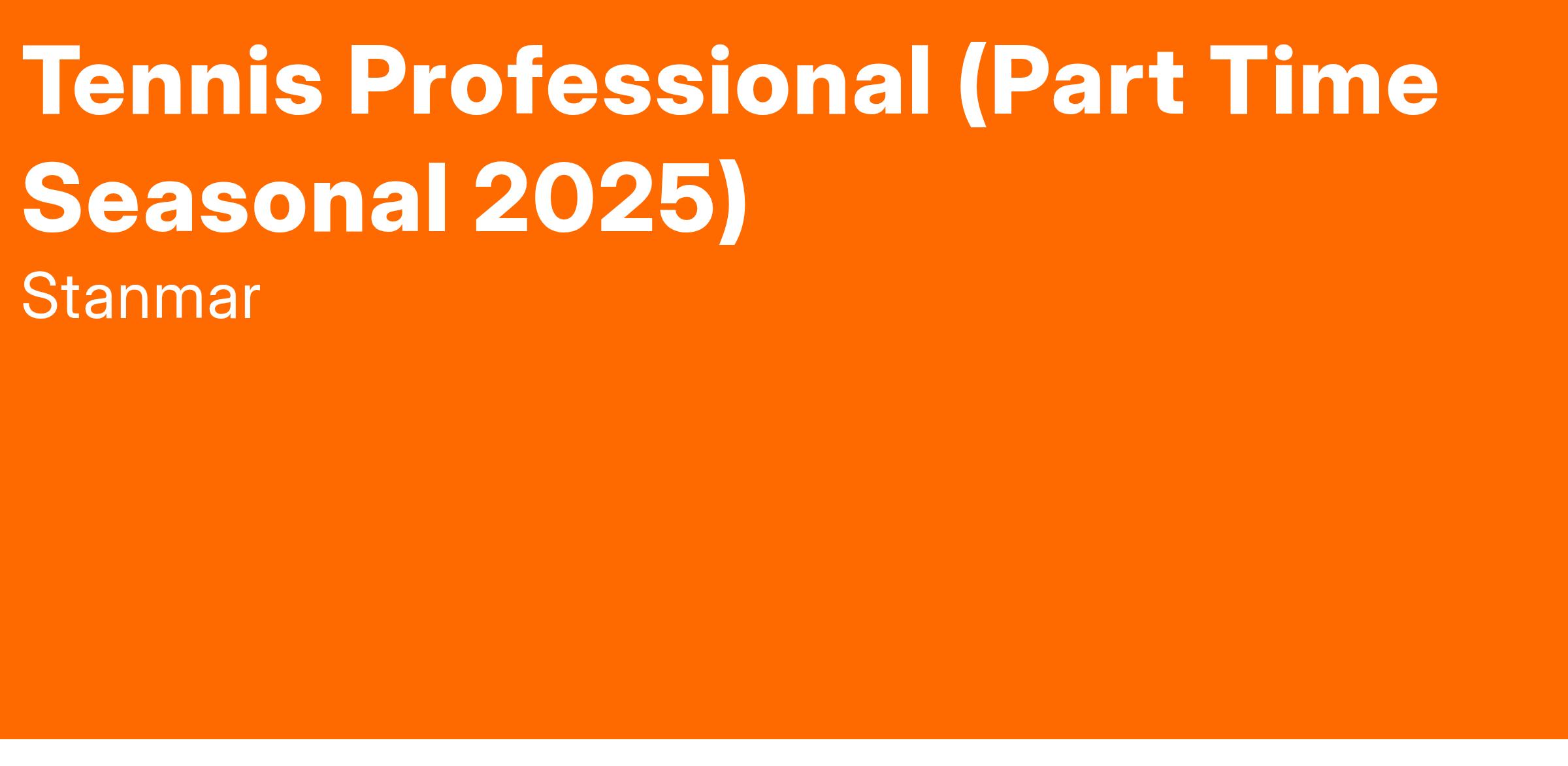 Tennis Professional (Part Time Seasonal 2025)