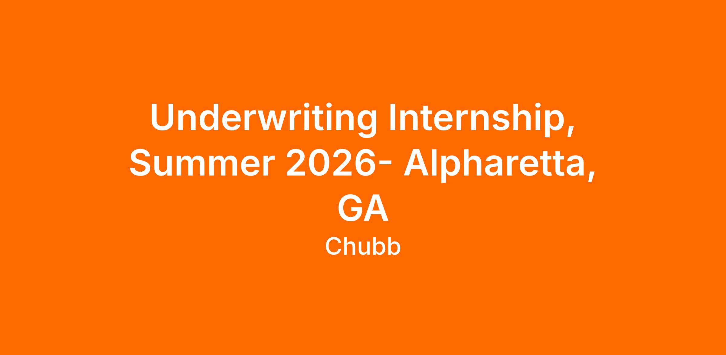 Underwriting Internship, Summer 2026- Alpharetta, GA