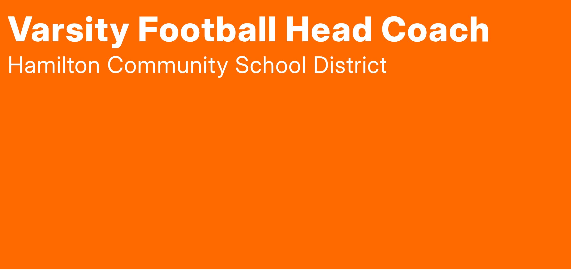 Hamilton Community Schools is seeking a passionate and dedicated Varsity Football Head Coach to lead our student-athletes both on and off the field. We are committed to finding a coach who not only develops a competitive program but also fosters a positive and supportive team culture that aligns with our district’s values.