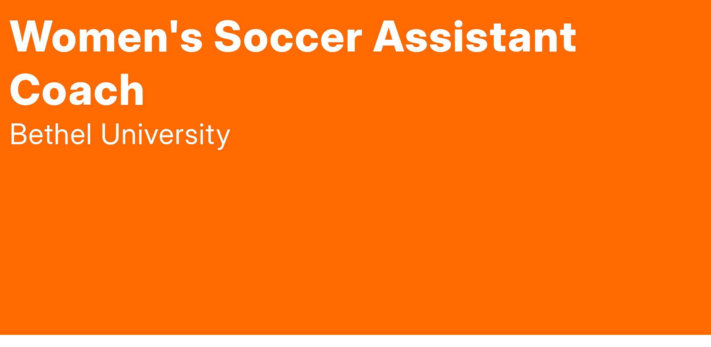 Bethel University is pleased to receive applications and nominations for the position of Women's Soccer Assistant Coach. This is a full-time position with benefits. The applicant should consider the mission and perspective of Bethel University before applying. The position requires acceptance and affirmation of the University's statement of faith and lifestyle commitment. Bethel University reviews all applications and hires individuals based on their qualifications for the position. Therefore, the University does not discriminate on the basis of race, color, national origin, sex, age, disability, political affiliation, marital status, parental status, or military or veteran status.